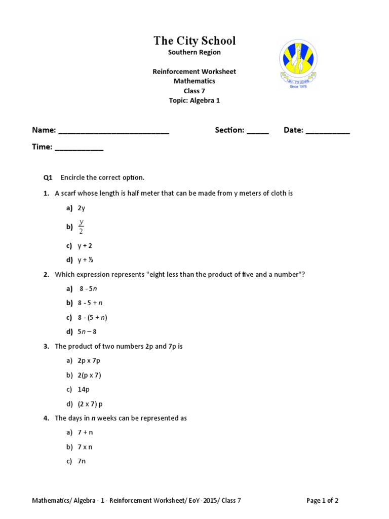 7th Grade Algebra Worksheets | Online Printable PDFs - Cuemath 7th grade algebra worksheets help you find a range of algebra topics in order to help students understand basic algebra, including calculating and generating algebraic expressions and solving simple problems. 7th grade math algebra worksheets contain topics like solving equations, evaluating and simplifying algebraic expressions, translating phrases, and much more.